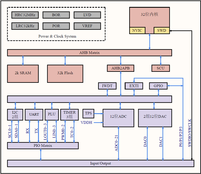 ??最大32 MHz主频,高精度内部振荡,全温度范围精度±2%,典型精度 ±1%